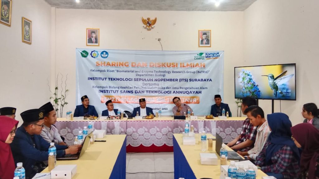 Fakultas MIPA Institut Sains dan Teknologi (IST) Annuqayah menggelar Sharing dan Diskusi Ilmiah dengan Kelompok Riset “Biomaterial And Enzyme Technology Research Group (BeTRG)”, Institut Teknologi Sepuluh Nopember Surabaya Jumat (18/08/2023) di ruang rapat IST Annuqayah.