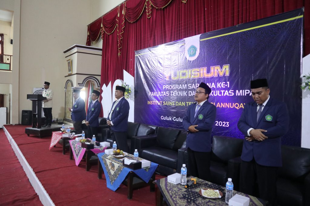 Institut Sains dan Teknologi Annuqayah, Guluk guluk Sumenep Madura menggelar Yudisium bagi Program Sarjana ke-1 Fakultas Ilmu Pengetahuan Alam (MIPA) dan Fakultas Teknik di Aula Asy-Syarqawi Pondok Pesantren Annuqayah, Kamis (04/10/2023)